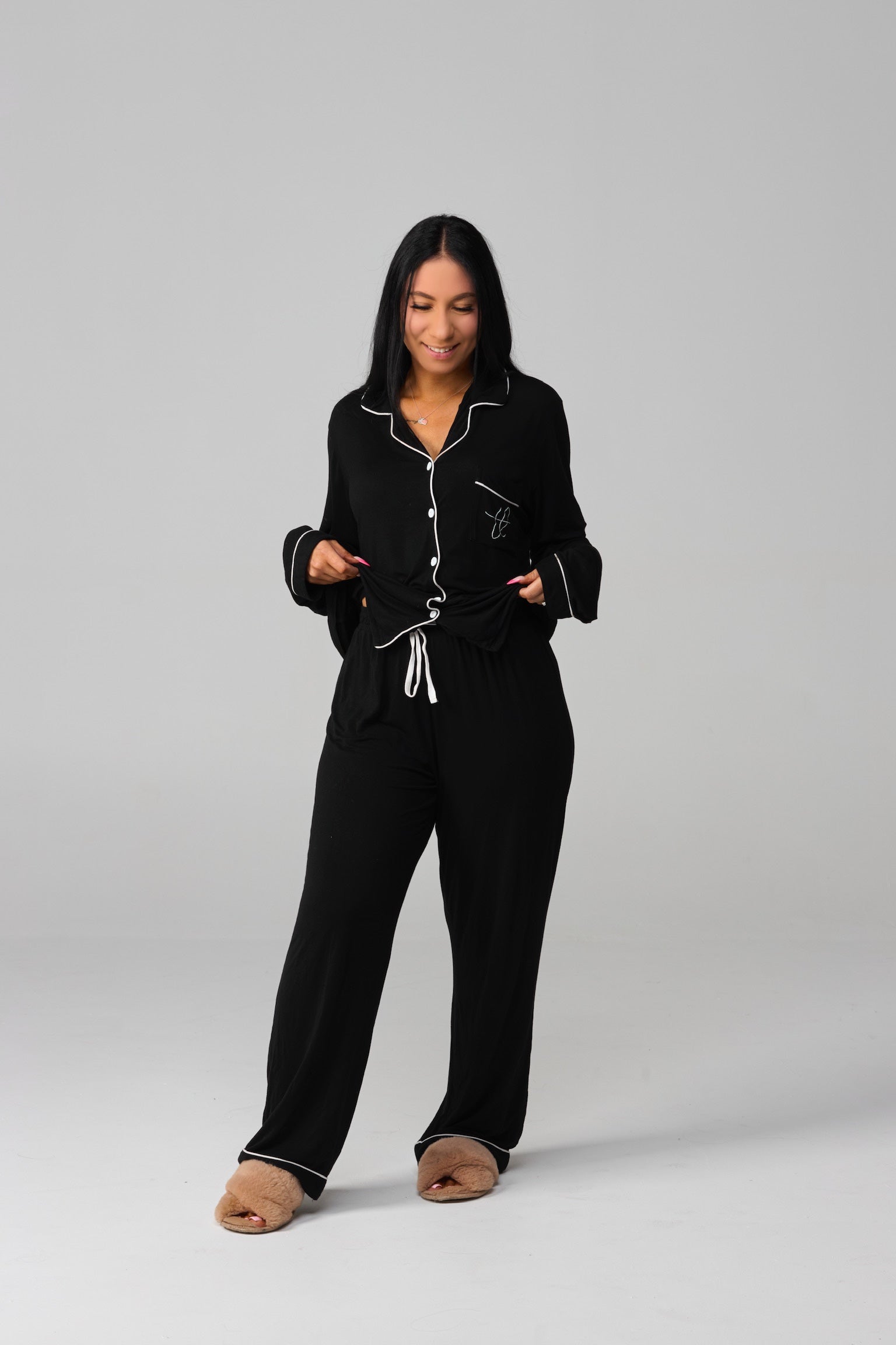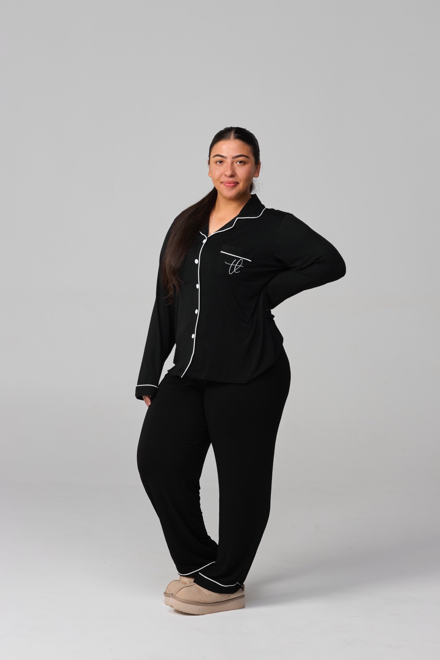 Our loungewear is designed to be soft, flowy & flattering — perfect for all body types. If you’re in between sizes and prefer a looser fit, we recommend sizing up!